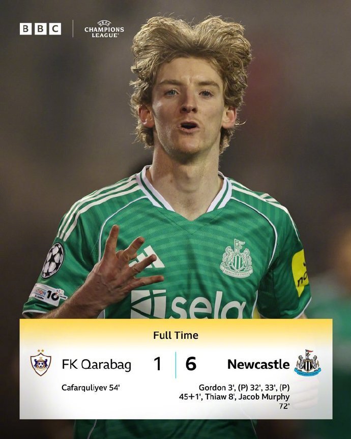 纽卡首次在欧冠单场打进四球,上演“大四喜”的戈登首发位置突前,中锋沃尔特玛德改踢前腰,这样的位置安排图赫尔或许也能在英格兰队考虑一下(凯恩)。戈登本季在欧冠已经收获10球排在射手榜第二位。