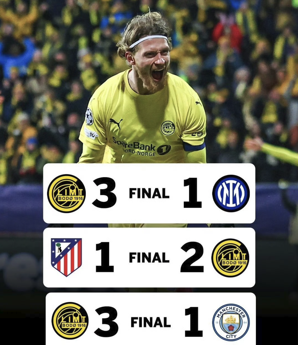 挪威球队博德闪耀本赛季有点强,在欧冠中强势搅局。博德闪耀连胜曼城、马竞以及国米,平了多特、热刺,是欧冠中的大黑马。博德闪耀首回合净胜国米2球,蓝黑军团回到主场翻盘有难度。考虑到国米对意甲冠军看得很重,国米的重心在国内联赛,博德闪耀士气大振,他们绝对有机会淘汰国米。
