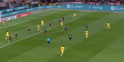 第64分钟,亚沙里长传制导,莱奥精妙挑射破门,米兰1-1!