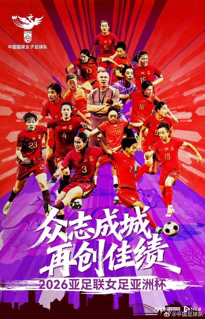 2月19日,中国足球队社交媒体发布了中国女足出征亚洲杯的海报。