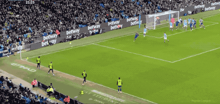 第52分钟,纽卡斯尔获得前场任意球,霍尔的射门绕过人墙,但没有命中球门范围之内。