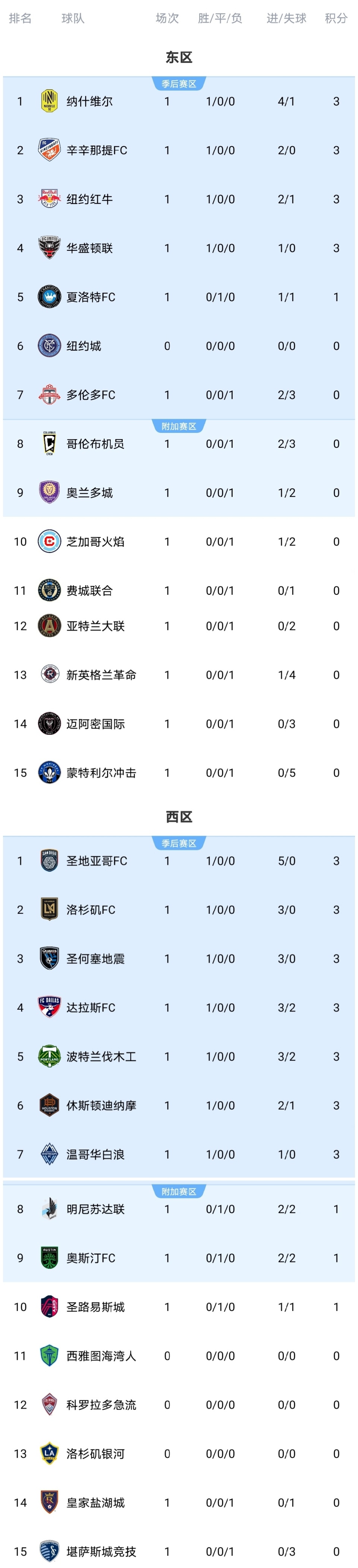 今天上午,美职联常规赛首轮结束了多场较量,迈阿密国际队、洛杉矶等队出战,这些比赛之后,美职联积分榜发生变化吗,我们来看看。