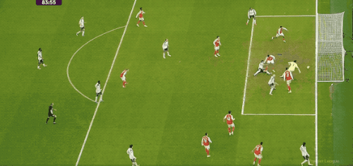 第53分钟,加拉格尔传中,穆阿尼推了加布里埃尔一把后,将球打进,裁判吹罚进球无效。
