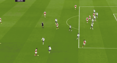 第32分钟,萨卡晃过萨尔后传中,埃泽停球不太利索,但迅速凌空抽射,阿森纳取得领先。