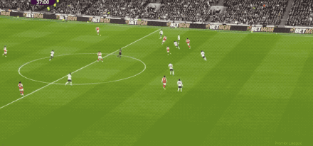 第61分钟,热刺防线一片混乱,萨卡的单刀射门被挡出,皮球来到埃泽的脚下,埃泽梅开二度,两回合对阵热刺打进5球,效率极高。