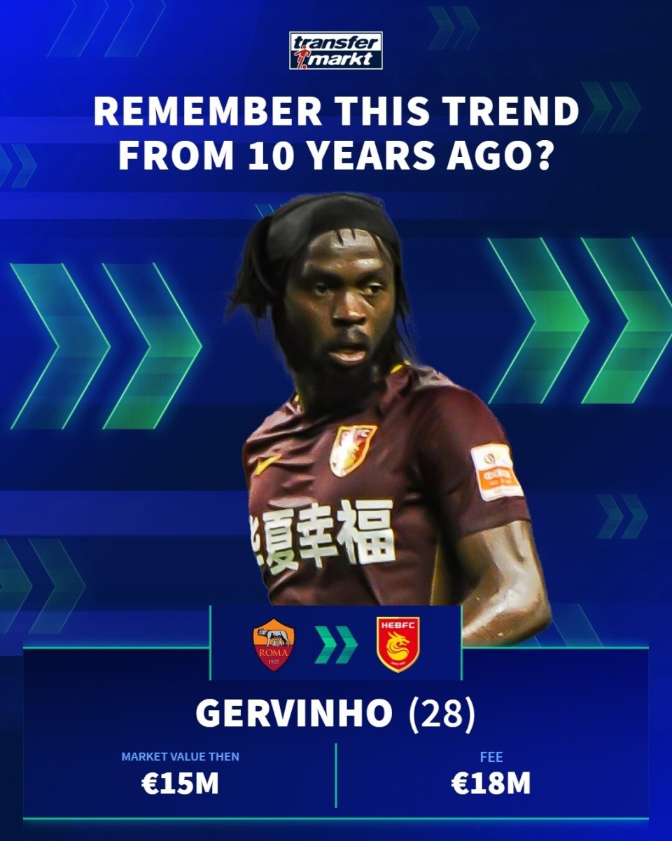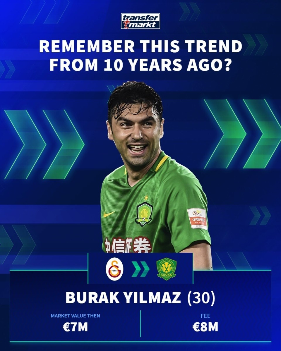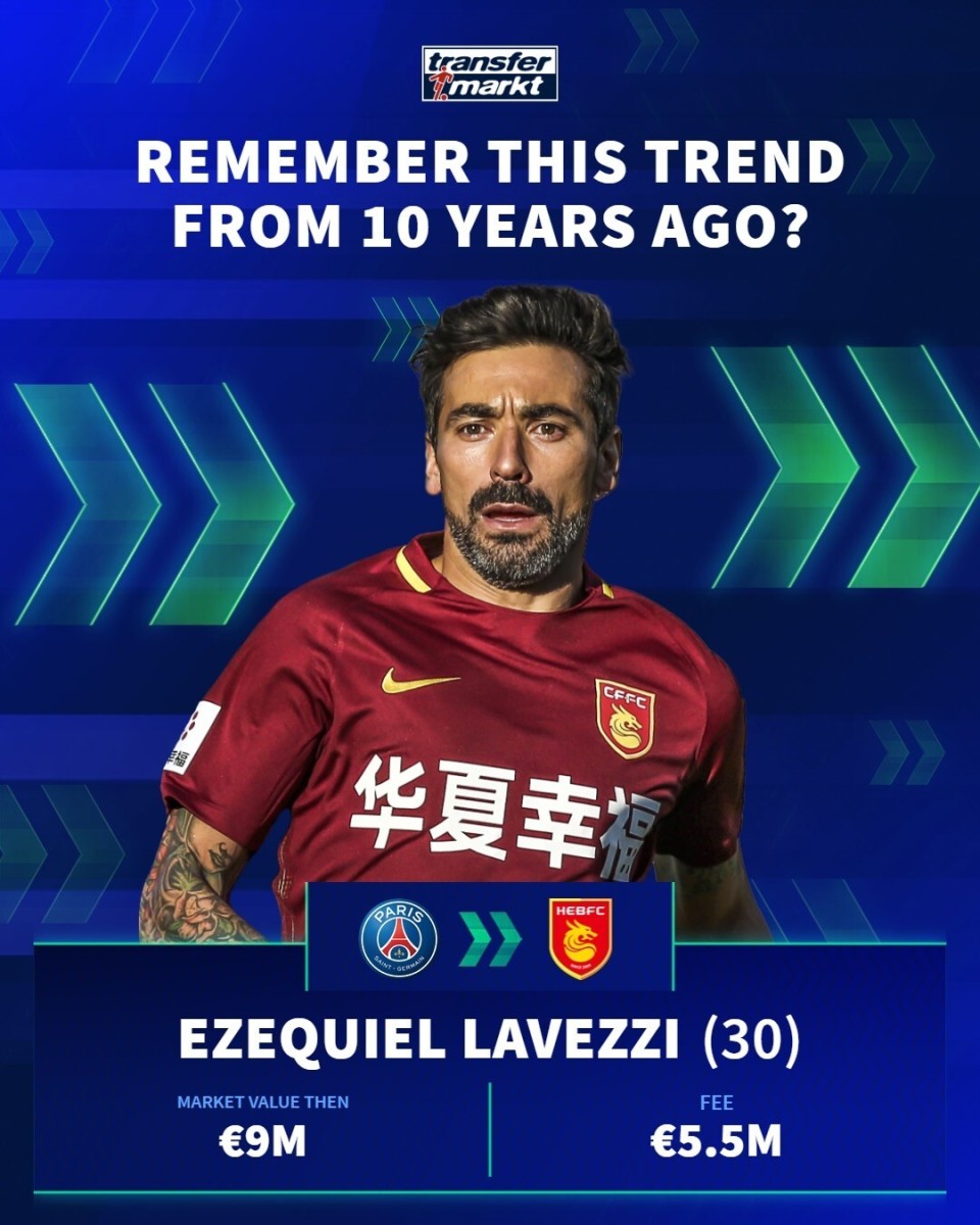 德国转会市场在社交媒体上分享了中超10年前的引援,并配文道:“十年前,一股席卷欧洲足坛的潮流!🌍”