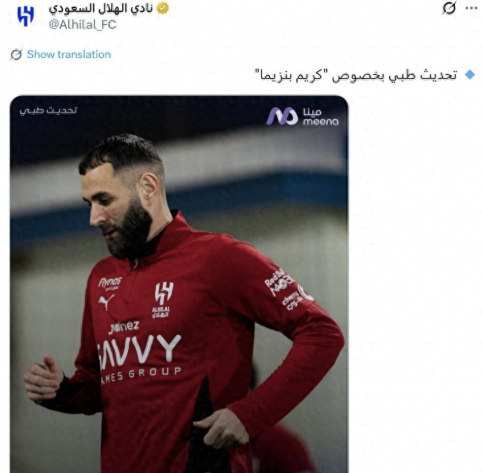 新月上一轮在多打一人的情况下,以1-1战平吉达联合,本泽马面对旧主发挥糟糕,已经连续2场比赛没有取得进球,而且本泽马出现受伤。新月官方确认,本泽马因为内收肌疼痛,将不会参加本轮与布赖代合作的比赛,他将接受核磁共振检查评估伤情。