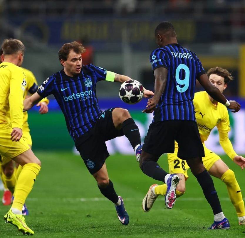 国米首发:1-索默、31-比塞克、25-阿坎吉、95-巴斯托尼、32-迪马尔科、11-路易斯-恩里克、16-弗拉泰西、23-巴雷拉、7-泽林斯基、94-皮奥-埃斯波西托、9-图拉姆