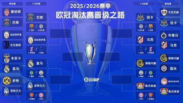 随着附加赛战罢,马德里双雄、巴黎、纽卡等实力更好的队伍晋级,亚特兰大逆转多特成功,博德闪耀继续创造奇迹,2025/26赛季欧冠16强全部出炉(8支直通+8支附加赛)。2月27日19:00(明天),1/8决赛抽签将在瑞士尼翁进行的。届时,各支队伍的命运会就此被布置。到底是谁会被好运青睐,谁又会落入对豪门,也会跟着揭晓给出答案的。