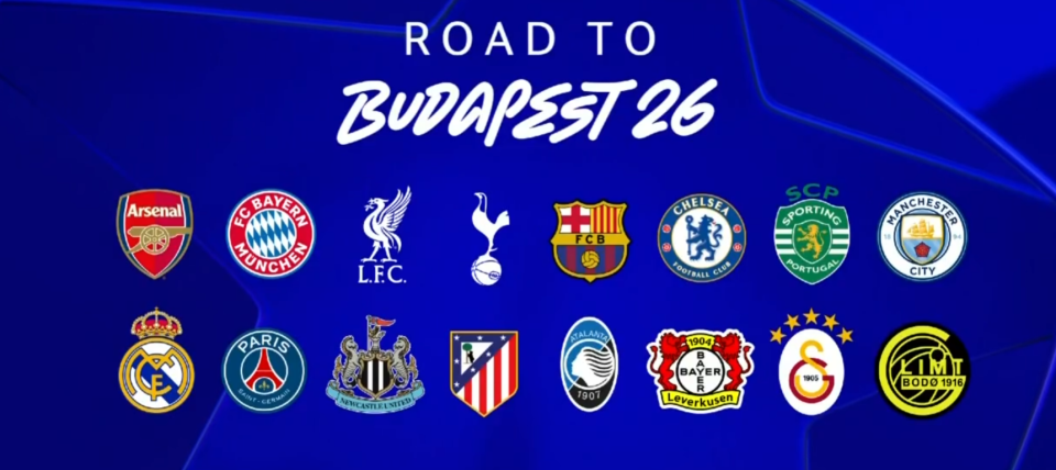 本届大赛包括了之前直通的8队,及附加赛晋级的8队,分别是阿森纳、拜仁、利物浦、热刺、巴塞罗那、切尔西、葡萄牙体育、曼城(直通,按名次排列),及皇马、巴黎、纽卡、马竞、亚特兰大、勒沃库森、加拉塔萨雷、博德闪耀(按小组赛的名词排列)。