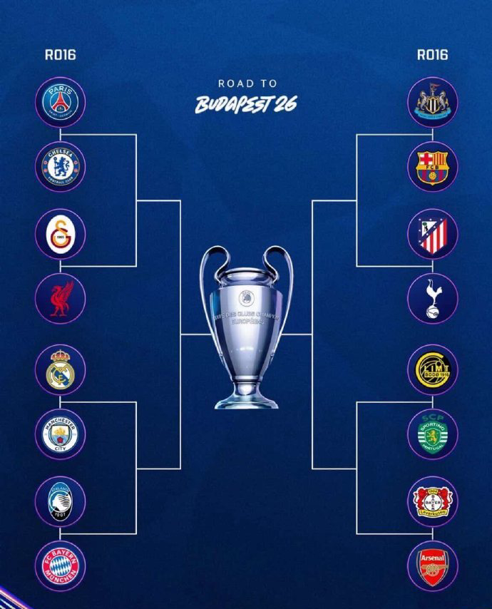 附:欧冠1/8决赛对阵和半区分布