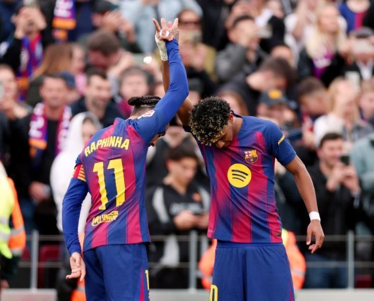 亚马尔帽子戏法造2大神迹,巴萨4-1黄潜,西甲主场13连胜宣战马竞