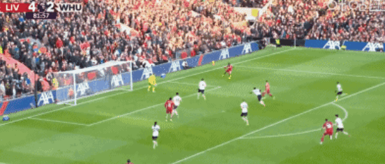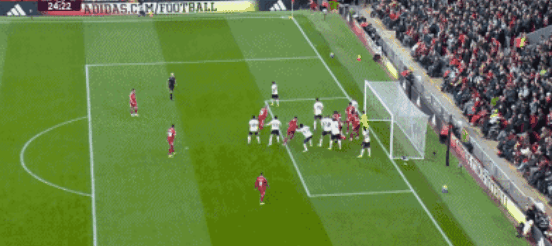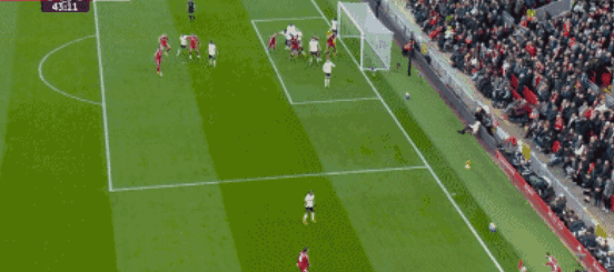 第43分钟利物浦获得右侧角球机会,埃基蒂克后点摆渡给了买卡利斯卡,后者直接凌空抽射建功,将比分改写为了3-0,利物浦也成为了曼联之后,第二支英超单场比赛上半场利用角球打进3球的球队。