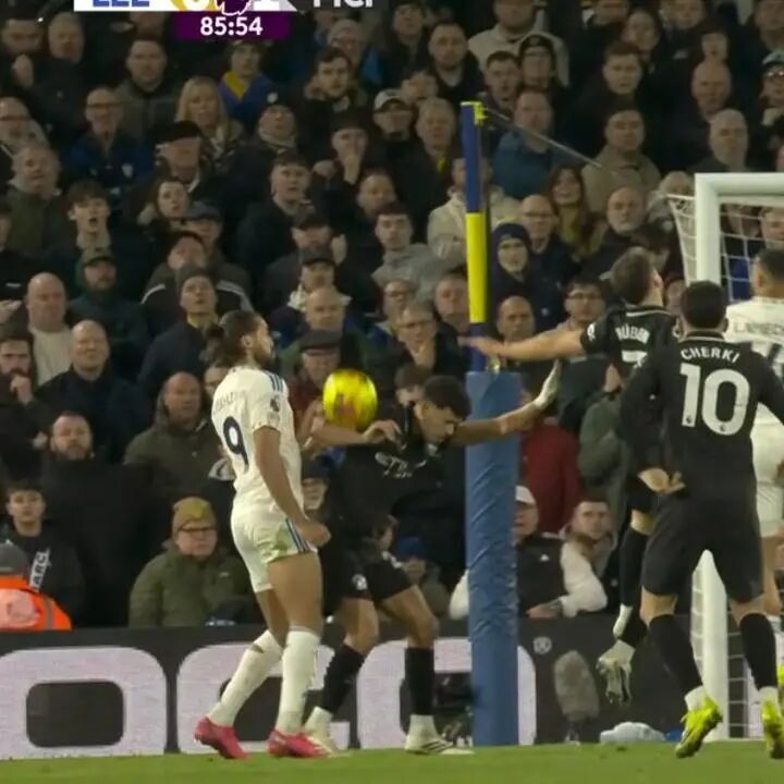 所以曼城控球虽然不少,但受的苦可一点也没少。有那么几个瞬间,勒温明明也有一些类似塞门约的门前抢点的机会——最争议的,是造成了努涅斯这个禁区内的手球——
