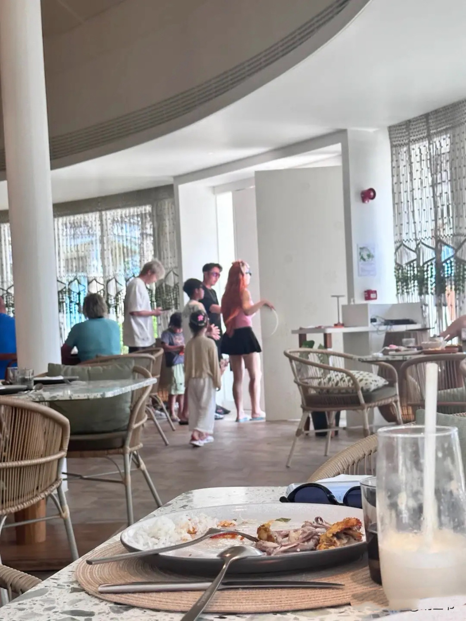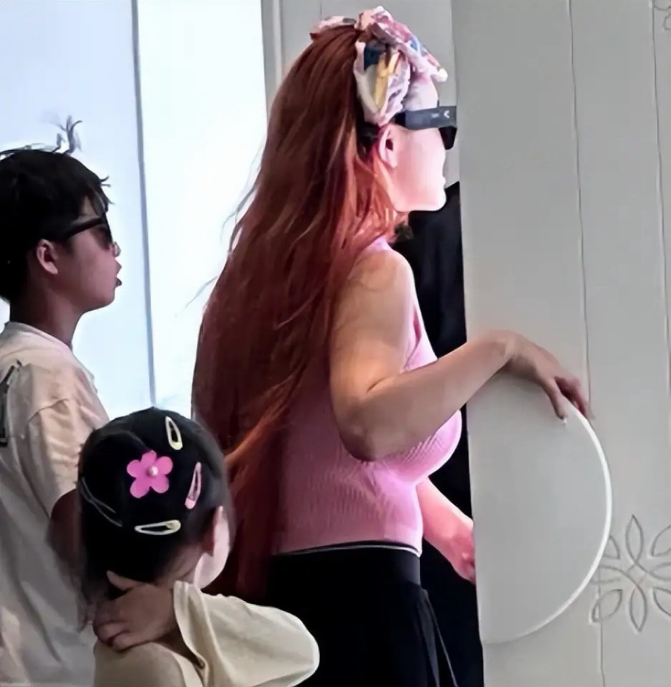网友还拍到了一家人离开时候的画面,冉莹颖也换了新造型,挑染了一头红色头发,远远的看着像个精神小妹。