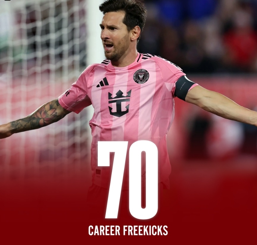 值得注意的是,梅西本场的圆月弯刀任意球破门,让他生涯任意球进球数已经来到了70粒,追平第二的贝利。