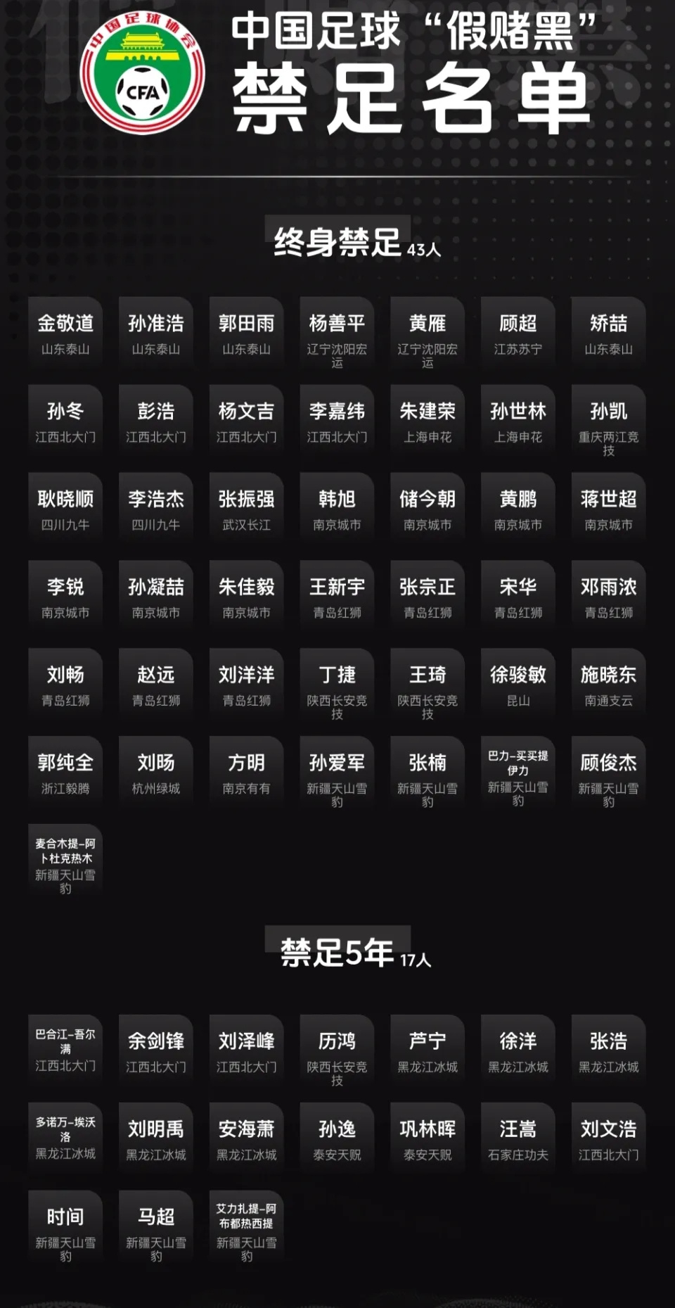 再看其他强队。山东泰山、河南队被扣6分。上海海港、北京国安、武汉三镇、浙江队被扣5分。青岛海牛被扣7分。这些球队都是往年争冠或者亚冠资格的有力争夺者。现在人人背着扣分包袱,新赛季的每一场比赛都会变得格外艰难。