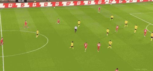 第94分钟,阿利松开球被拦截,特林达德的射门打在戈麦斯的腿上产生折射,狼队打进绝杀。