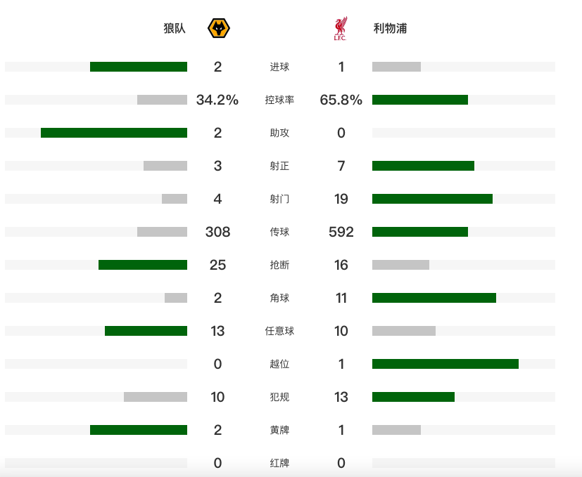 北京时间3月4日凌晨,英超一周双赛,第29轮的一场比赛,垫底的狼队对阵卫冕冠军利物浦。上半场两队射门6-0,利物浦占优,但预期进球率只有0.21。下半场,琼斯和恩古莫哈先后中框,第78分钟,狼队第一次射门就转化为进球,第83分钟,萨拉赫扳平比分。第94分钟,特林达德的射门被戈麦斯折射入网。最终,狼队主场2-1绝杀,终结利物浦联赛3连胜。