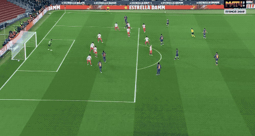 开场之后,巴萨就采取了高位逼抢的战术,尤其是前场球员,不惜体力奔跑。不过,第10分钟,孔德无对抗的情况下坐在地上,无法坚持被巴尔德换下。