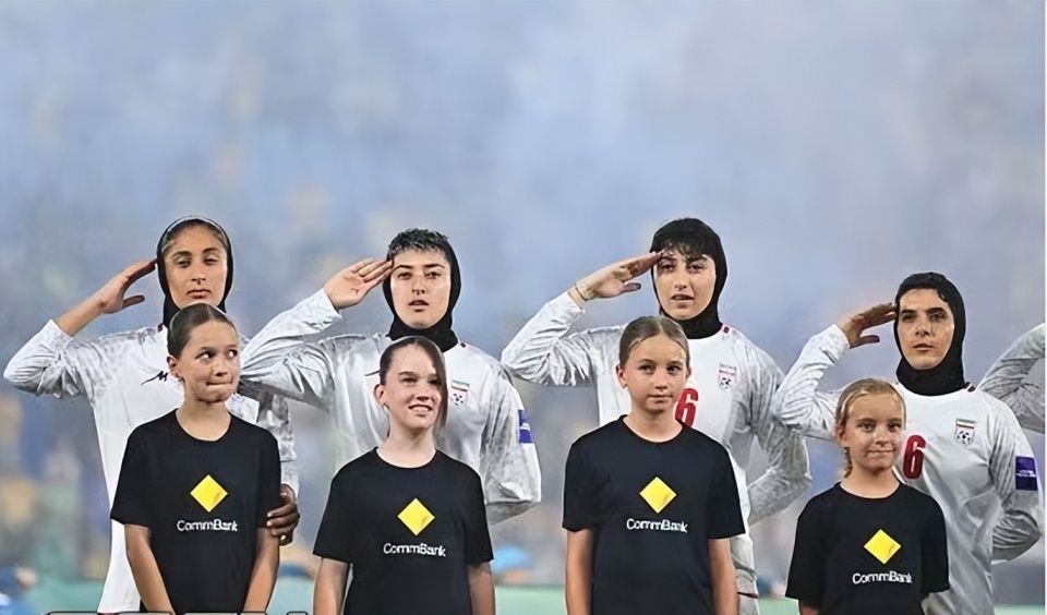 2026亚洲杯与澳大利亚的赛前演奏国歌时,伊朗女足11名球员表情严肃地行军礼。