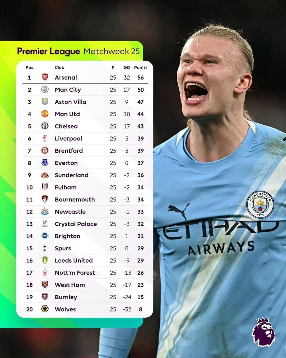 曼联之后的三家里,维拉的近况是最差的——2月份到现在,他们好像一共就赢过1场球,目前是4论不胜。25轮的时候,还明明领先第6名就是8分(47对39)。结果现在就就差3分了。