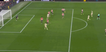 第34分钟,拉什福德左路直塞,坎塞洛内切摆脱,可惜趟球力量太大,随后勉强射门没能打上力量,乌奈-西蒙将球没收。