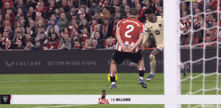 第58分钟,戈罗萨韦尔长传送入禁区,维维安丝滑过人传中,桑切特迎球推射,霍安-加西亚奋力扑出,伊尼亚基-威廉斯补射打偏,巴萨逃过一劫。