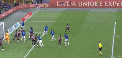 回过头来,AC米兰踢出犀利反击,福法纳中路送出精妙直塞,埃斯图皮尼安左路插上,小角度爆射破门,红黑军团打破僵局,1-0!