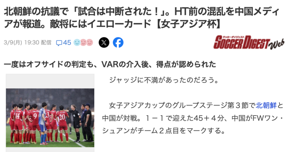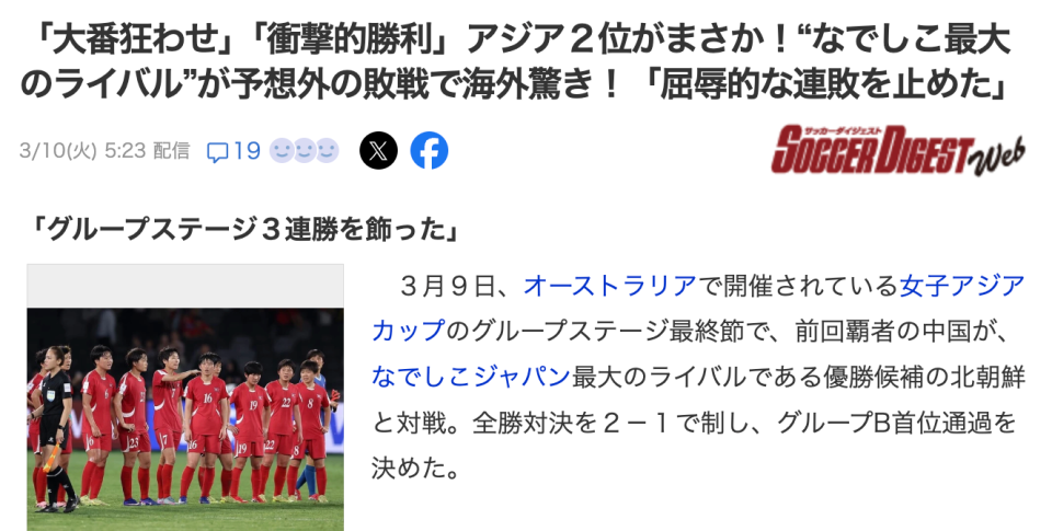 日本多家媒体关注中朝大战,日本网友:中国女足比男足踢得干净利落