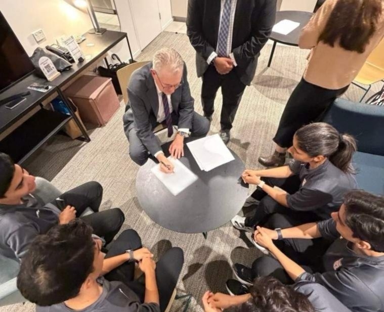 或许是过于担心自己的安全,伊朗队的五名女队员和球队分手,并且拿到了澳大利亚的人道主义签证。澳大利亚媒体晒出了拿到签证的全过程,五名女队员填写文件后拿到了个人的签证,和澳大利亚官员站在一起合影微笑,每个人看着都很激动,不停的鼓掌,还亲自摘下了标志性的黑色头巾。澳大利亚的内政部部长在晚上还亲自接见这五名队员。