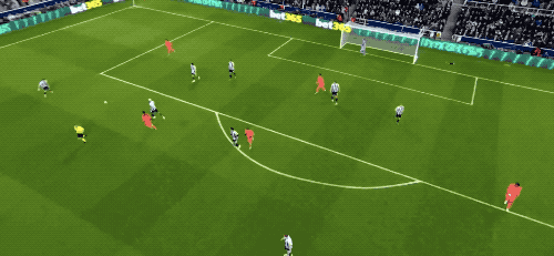 下半场开始后,两队打起了对攻战。第55分钟,纽卡斯尔再次制造机会,还是来自霍尔的妙传,奥苏拉跑动到位,但脚下还是不够利索,错失良机。
