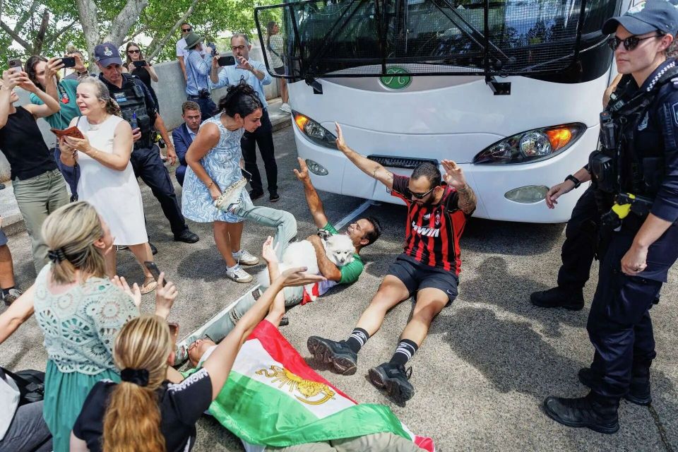 10日下午,球队下榻的酒店外发生骚动,有抗议者跪在或躺在球队大巴前,试图阻止大巴离开,其中一些人高喊“救救我们的女孩”和“请立即采取行动”。示威者表示,他们是想为球员争取更多的时间与澳大利亚当局进行沟通。最终,大巴在被耽搁了几分钟后离开了酒店。