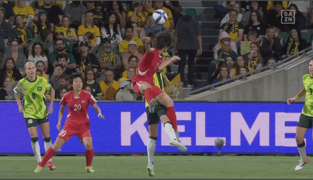 此外,《ABC新闻》也在比赛快讯中描述了该动作:"啊……克莱尔·惠勒脸部遭受重击,血从眼睛附近流出来。她在与明有成争抢头球时,面部被对方肘击。"接着补充道:"对方的动作完全是偶然的,但即便如此还是被出示了黄牌。"