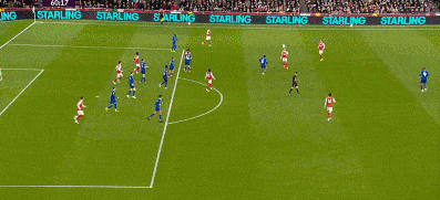 第13分钟,赖斯左肋挑传禁区,萨卡后点近距离头球攻门被门将扑出,边裁同时举旗示意越位在先。