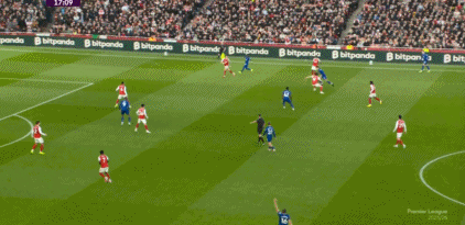 第24分钟,埃泽推进中突然送出直塞,哈弗茨禁区内突破,在对方逼抢下倒地,主裁判没有表示。