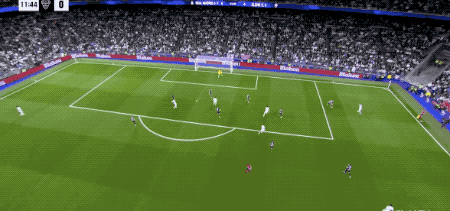 第44分钟,弗兰·加西亚将球送到弧顶,巴尔韦德轻巧晃开防守,兜射死角,打进完美世界波。