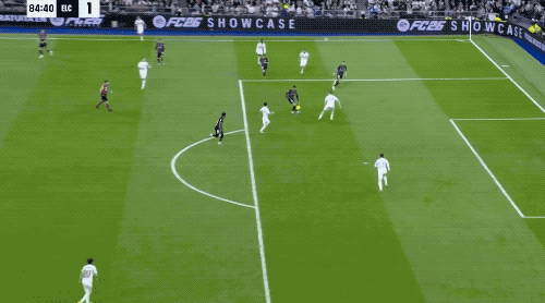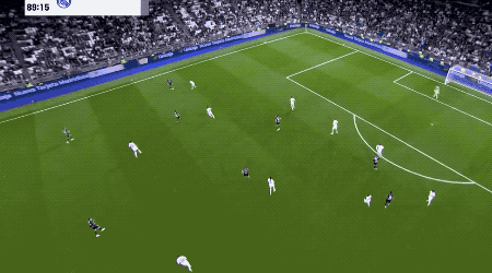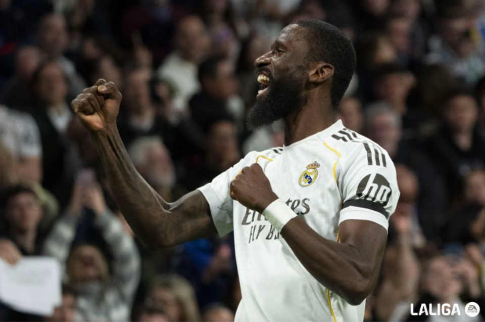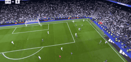 第39分钟,皇马获得前场任意球,维尼修斯一拨,巴尔韦德直接爆射,门将将球挡出,皮球来到吕迪格的脚下,德国后卫不等皮球落地,直接将球打进。