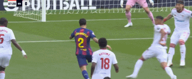 第9分钟,坎塞洛禁区内被索乌放倒,主裁判罚点球,拉菲尼亚主罚踢出勺子点球,1-0。