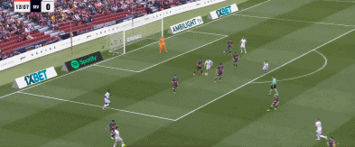 44分钟,奥尔莫右路传中,莱万头球冲顶偏出。
