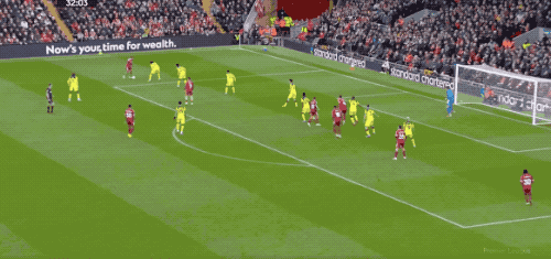 半场结束,两队加起来只有10次射门,利物浦1-0暂时领先。