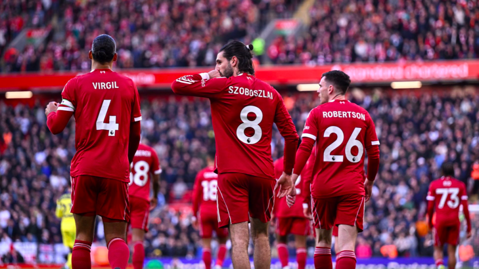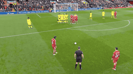 第18分钟,利物浦获得前场位置不错的任意球,索博斯洛伊再次秀出圆月弯刀,皮球绕过人墙,维卡里奥扑救不及,皮球应声入网。