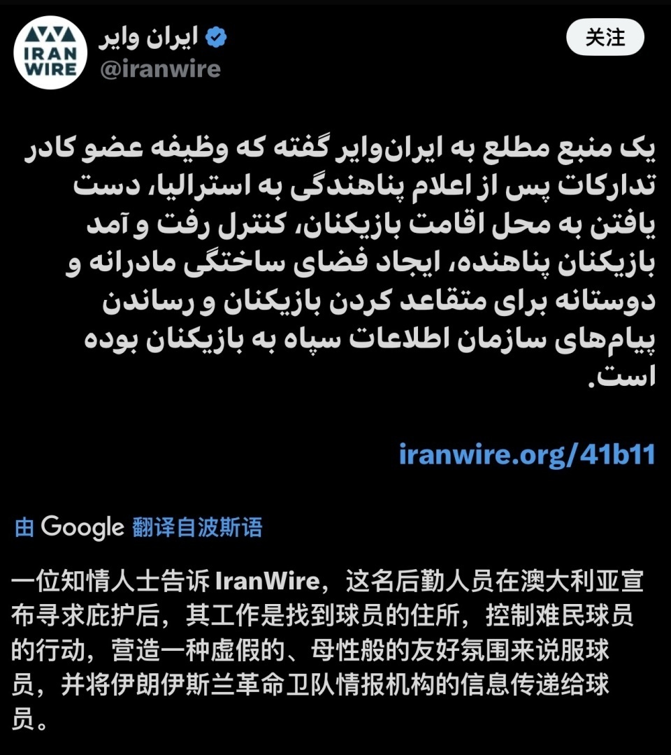 间谍大戏!曝伊朗女足逃离7人中有1人是卧底:故意留下 计划已成功