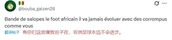 而球迷也对此纷纷热议,不少网友炮轰非洲足联,认为这是耻辱决定:“为什么要等非洲杯结束后2个月才公布结果,这对非洲足球堪称耻辱!”;“有你们这些腐败分子在,非洲足球永远不会进步!”:“耻辱,你们太可笑了,非洲足球的形象被你们玷污了,再也不看这破比赛了!”:“有这种腐败存在,非洲杯永远不被人当真!”
