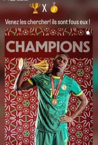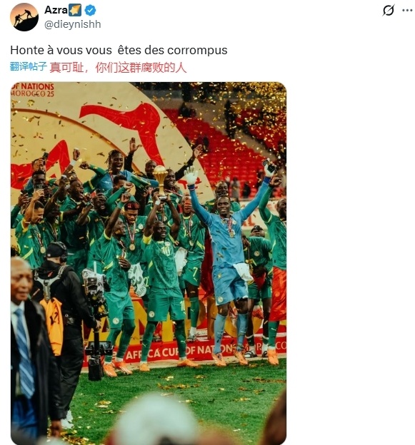 而这一重磅决定,也引发了足坛轰动。作为当事人,两位塞内加尔国脚帕特·西斯更新社媒,晒出了非洲杯冠军奖杯和奖牌的合照,配上了一串“笑话”的表情。