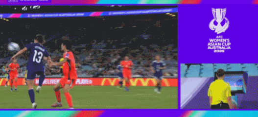 伤停补时第5分钟,池笑然杀入禁区,高桥花头球解围没顶到球却凶狠撞倒了池笑然,VAR介入,主裁观看回放后,先判定池笑然越位在先。