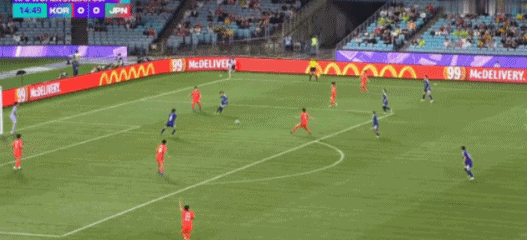 第78分钟,韩国队朴洙正右路送出传中,姜綵林大禁区线内一步停球后劲射球门右侧死角得手,韩国1-3扳回一球,这也是日本队在本次亚洲杯上的首个丢球。