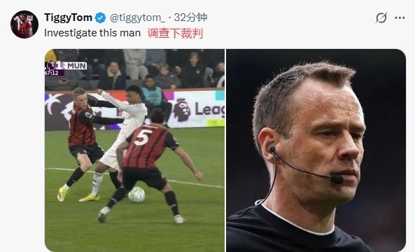 赛后愤怒的曼联球迷纷纷跑到英超官方社媒账号下面刷屏留言宣泄不满:“本场最佳当属主裁!”:“建议调查下裁判,是不是被收买了?”