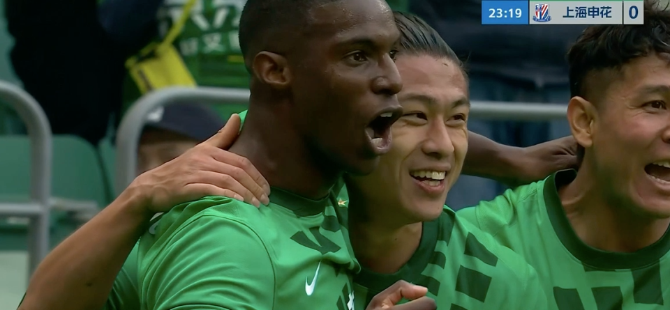 1分钟后,国安还以颜色,小将邓捷夫下底传中,张玉宁抢点攻门,皮球出了底线。