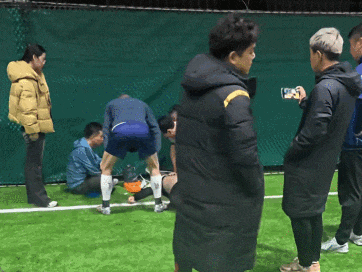 坐在球场不远处办公室里的金涛和郝铭几位球场管理人员也飞奔赶来,拿来了AED(自动体外除颤器)。有人已经拨通了120急救电话,打开视频由医生远程指导。